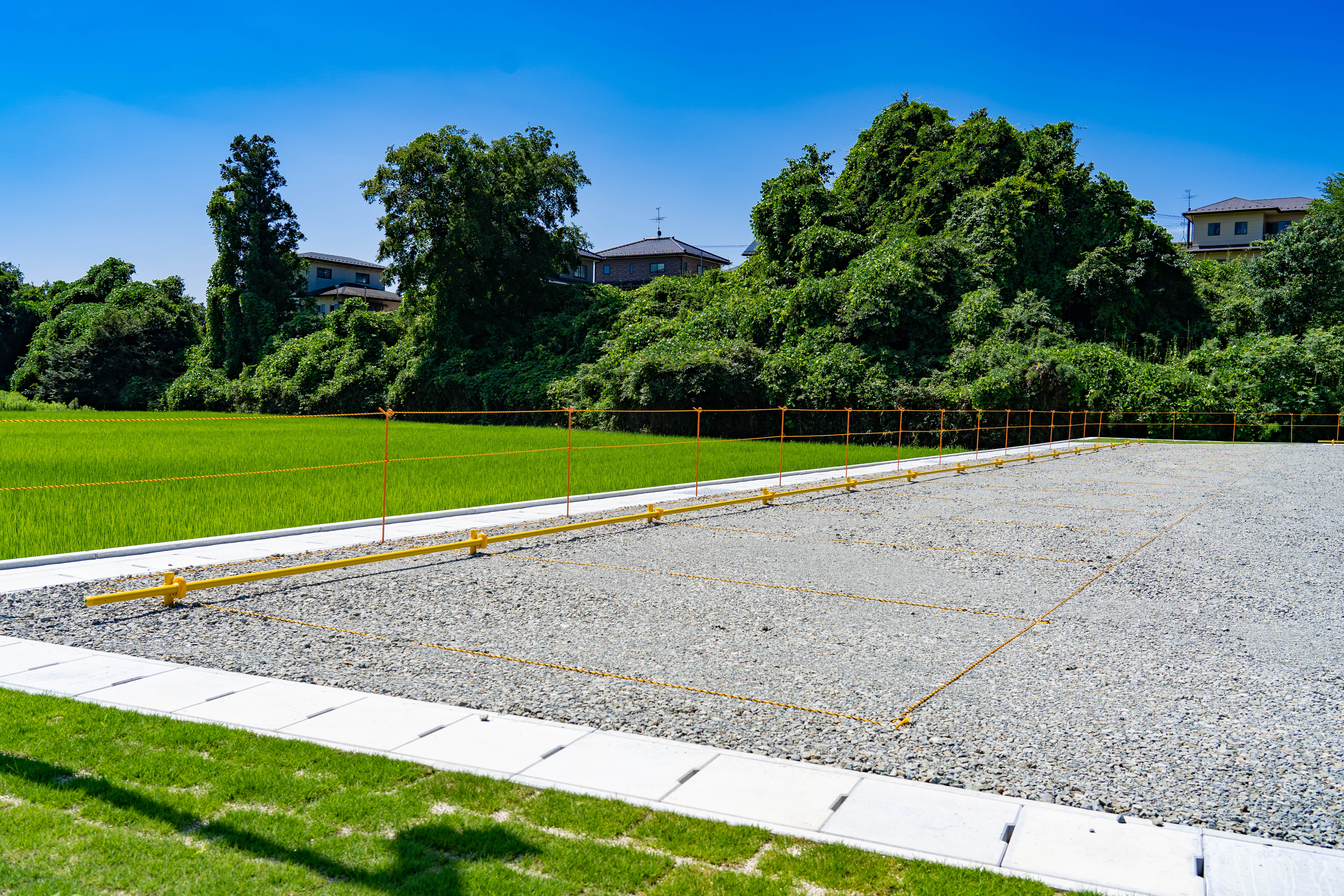 単管パイプを利用した車止めです。砂利の駐車場にお勧めです。
